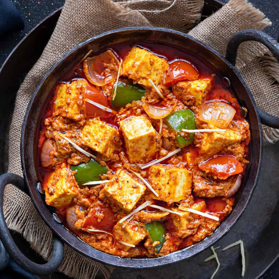 Cottage cheese and bell papper, onion cooked with masala gravy finished with kuta spicy