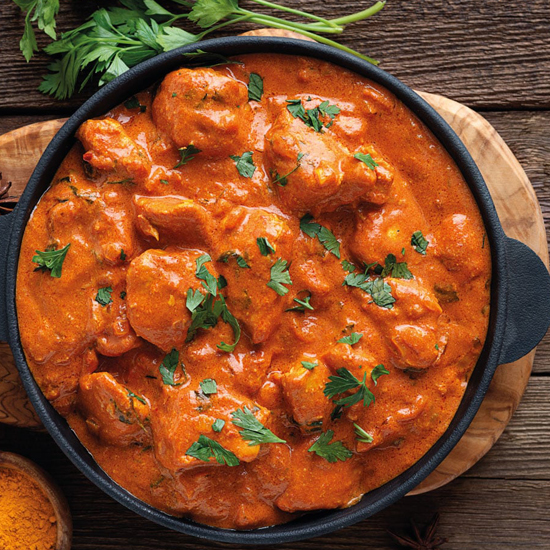 Chicken smoked in tandoor and then cooked with cream butter sauce