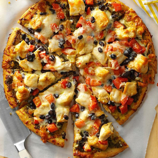 Marinated paneer with green chutney peppers, onion, olives, pineapple and mozzarella cheese